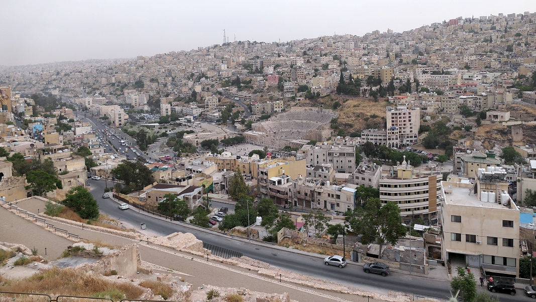 Amman: Blick von der Zitadelle auf das römische Theater ...