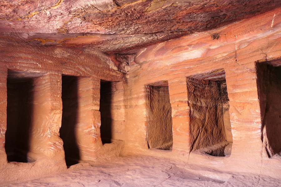Petra: Kammer des Unayshu Grabes mit Grabnischen ...