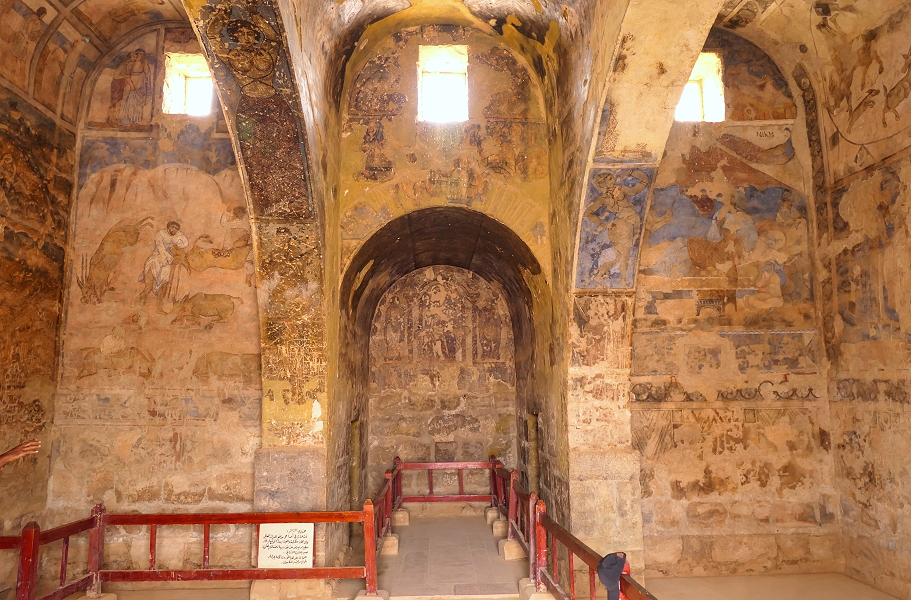 Qasr al-Amra ist berühmt für seine Fresken, die allerdings in früheren Jahrzehnten durch unsachgemäße Behandlung und Vandalismus stark gelitten haben und erst geschützt werden, seitdem al-Amra im Jahr 1985 Teil des Weltkulturerbes wurde ... | |