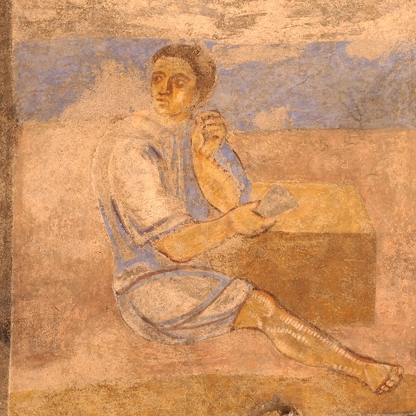 Detail der Deckenbemalung in Qasr al-Amra ...
