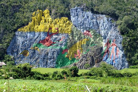 Das 1961 vom mexikanischen Künstler Leovigildo González Morillo auf einem Kalkfelsen geschaffene 'Mural de la Prehistoria' ist ein 120 Meter hohes und 180 Meter breites Kunstwerk ... | |