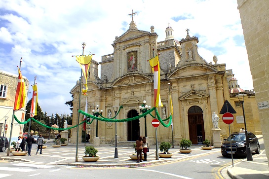 Am Ostermorgen ist der Platz vor der St. Pauls Kirche in Rabat festlich geschmückt ...