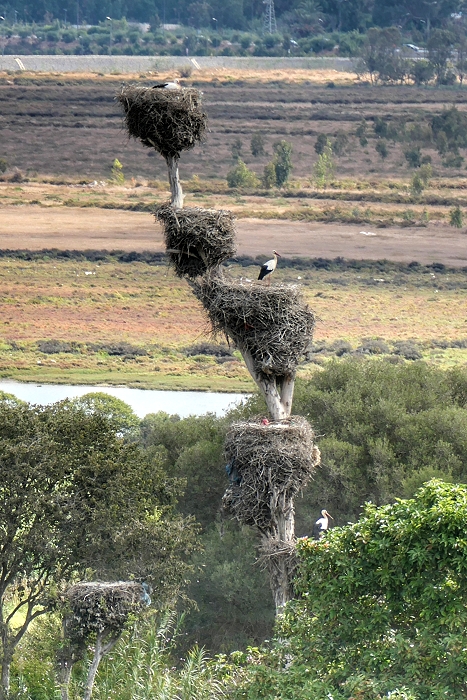 Zahlreiche Störche nisten in den Auen des Flusses Bou-Regreg, der die Städte Rabat und Salé voneinander trennt ...