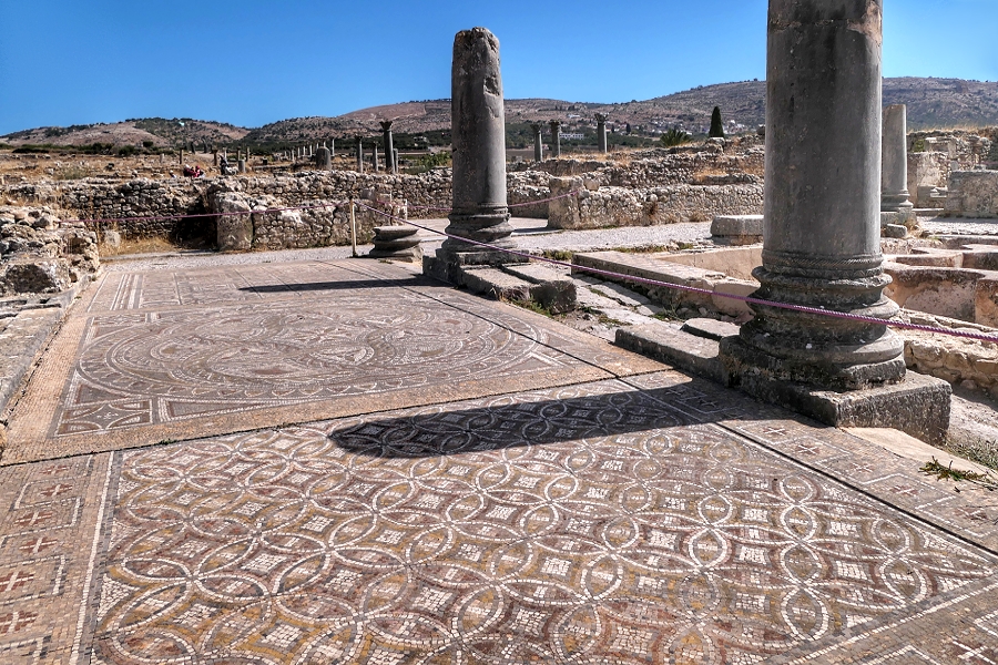 Volubilis: Mosaikboden im 'Haus der Aufgaben des Herkules' ...