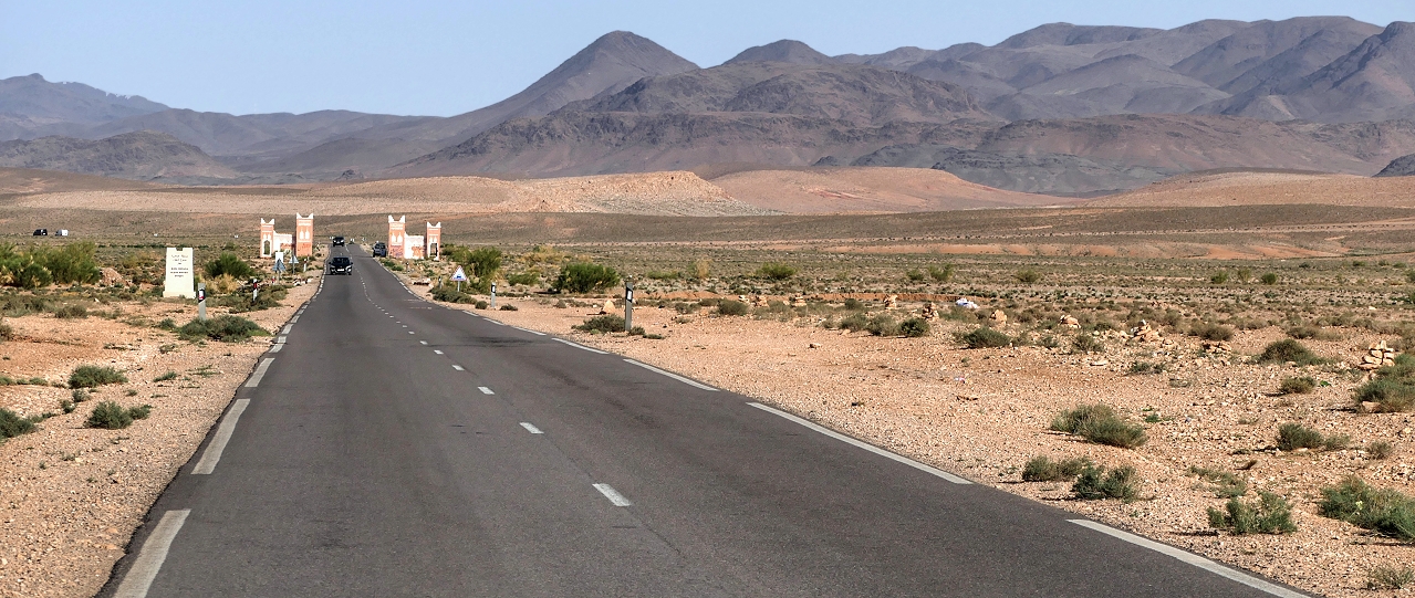 N10 zwischen Tineghir und Boumaïne-ed-Dadès: Die Torpfeiler beiderseits der Straße markieren die Grenze zwischen zwei Provinzen ... | |