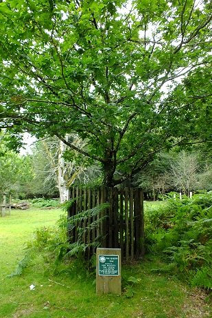 Die 'Queen's Oak', wurde am 12. April 1979 anlässlich des 900. Jubiläums der Gründung des New Forest durch Wilhelm den Eroberer von Königin Elizabeth II. gepflanzt ...