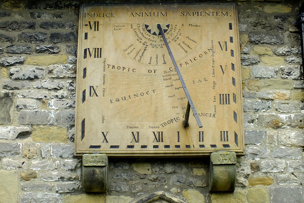 Sonnenuhr von 1775 an der Kirche von Eyam ...