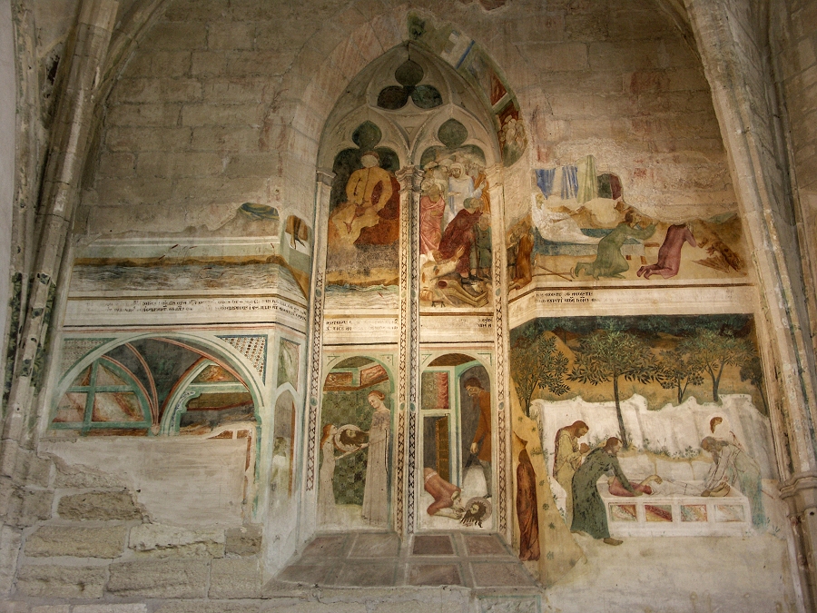 In der Kapelle des Grand Tinel, die an den großen Kreuzgang grenzt, sind noch Fresken aus dem 14. Jahrhundert erhalten ...