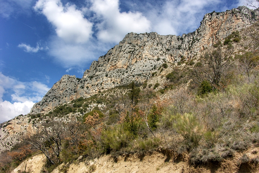 Auf der Nordseite der Verdon-Schlucht rücken die Felsen bis dicht an die Panoramastraße heran ...