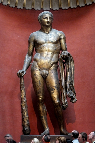 Statue des Hercules aus dem Theater von Pompeji in der Sala Rotonda im Museo Pio Clementino ...