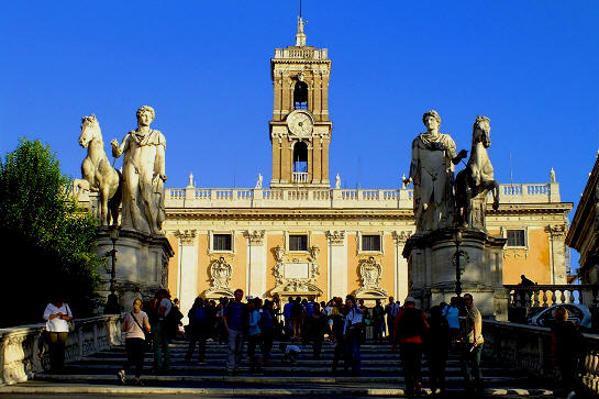 Der Zugang zum Kapitolsplatz wird auf beiden Seite von den Dioskuren, den antiken Schutzgöttern Roms, bewacht ...