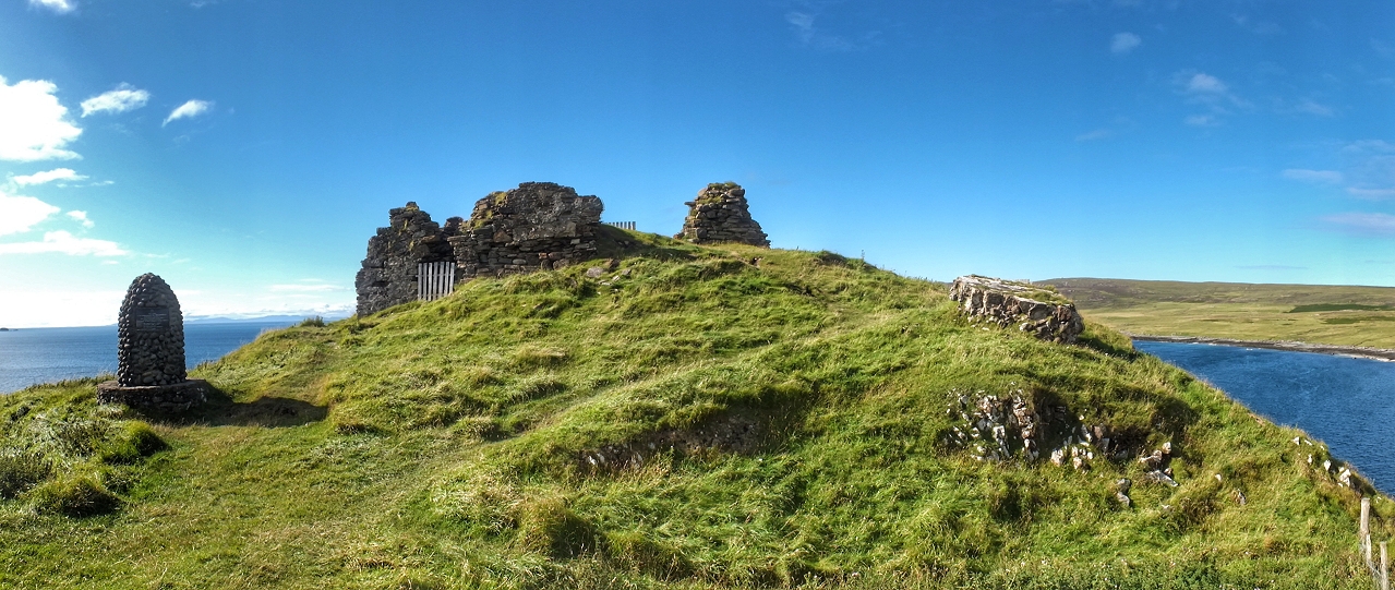 Ganz im Norden der Insel Skye liegen die Reste von Duntulm Castle auf einem Felsvorsprung an der Küste ...