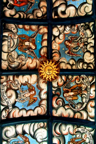 Die Engel im Gewölbe der Kirche St. Peter und Paul in Muchelney tragen ungewöhnlich freizügige Kleidung im Stil der Tudorzeit ...