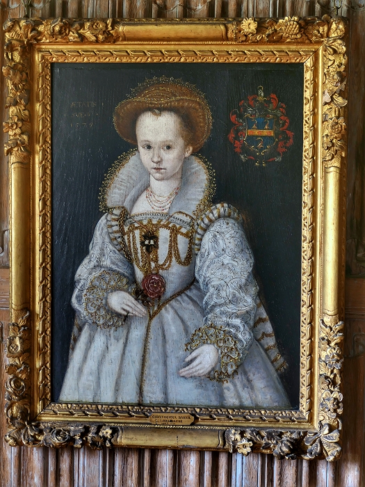 'The Vyne': Portrait von Chrysogona Baker (1573-1616), der späteren Ehefrau des Parlamentariers Henry Lennart, 12. Baron Dacre (1570-1616), im Jahre 1579 im Alter von 6 Jahren ...