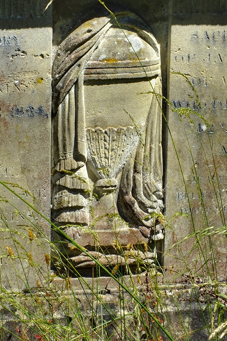 Relief im klassischen Stil auf einem Grabmonument des 19. Jahrhunderts auf dem Friedhof von Everleigh ...