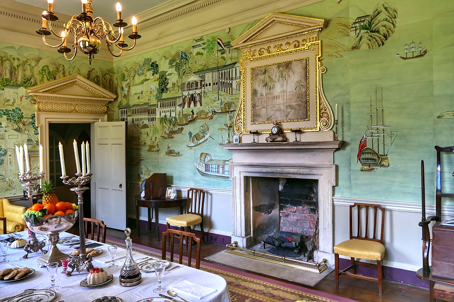 Nach mehreren Besitzerwechseln und dem Bankrott des letzten Eigentümers kaufte der National Trust das Haus im Jahr 1991 und richtete die Räume im Stil unterschiedlicher Epochen ein (hier das Esszimmer aus der Georgianischen Zeit) ... | |