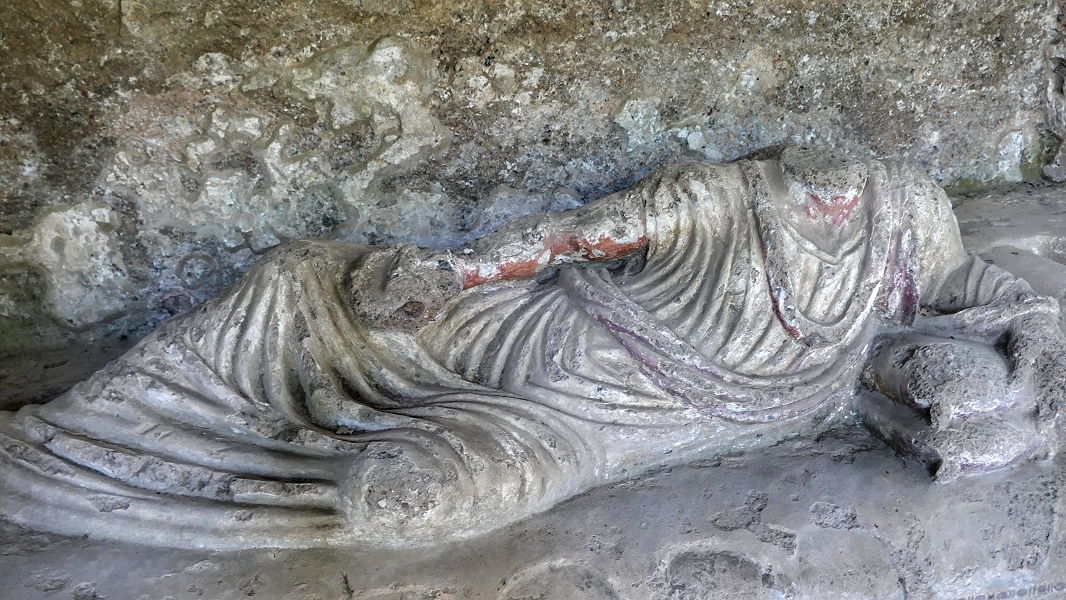 Das 'Grab der geflügelten Dämonen' ist das einzige in der etruskischen Nekropole von Sovana, dessen ursprünglich polychrome Figuren und Reliefs noch teilweise erhalten sind ... | |