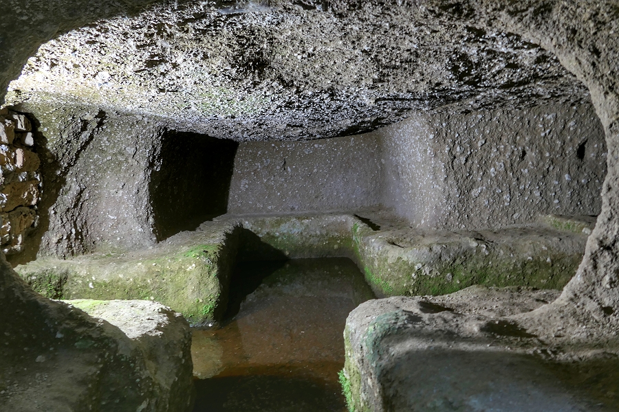 Die Kammer des 'Löwengrabes' hat einen kreuzförmigen Grundriss mit Ablagebänken auf allen Seiten ...