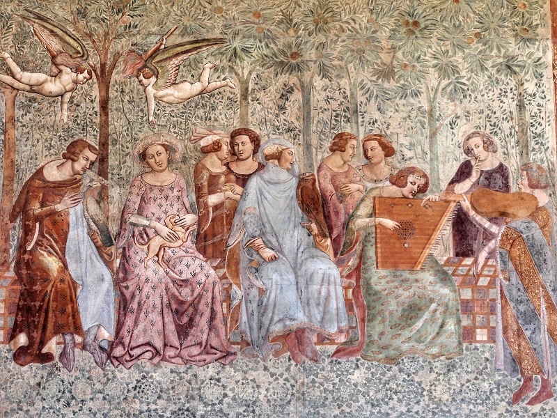 'Campo Santo', Freskenzyklus 'Triumph des Todes': Höfische Frauen hören Musik im Garten der Liebe (um 1340) ...
