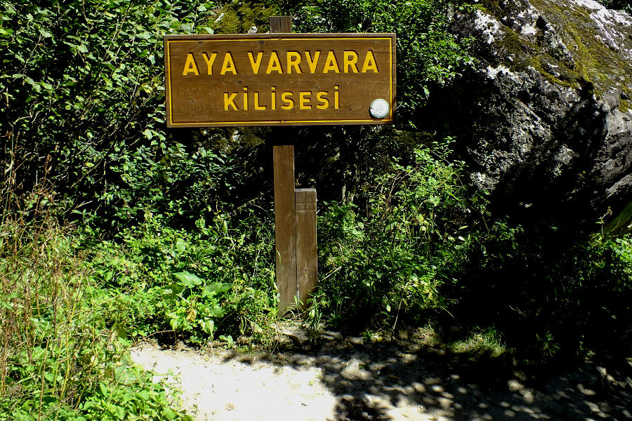 Ein einfaches Schild weist den Weg zur kleinen Kapelle Aya (Hagia) Varvara ...