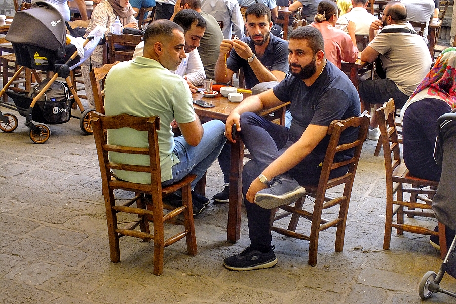Gesellige Runde in einem Café im Brunnenhof des Hasan Paşa Hanı ...