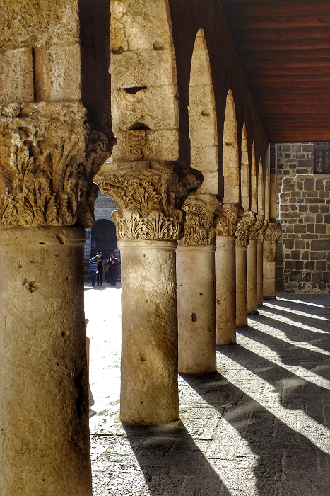 Große Moschee in Dıyarbakır: römische Säulen in der Nordarkade des Hofes ...
