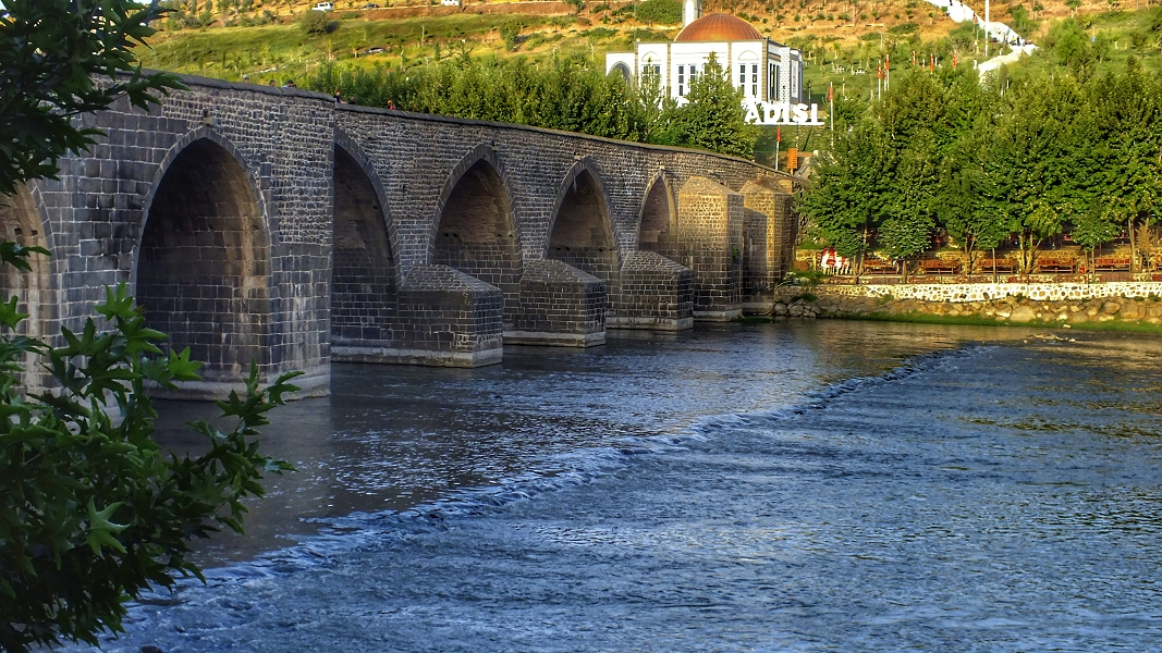 Etwa 3 km südlich von Dıyarbakır überspannt die sogenannte 'Römische Brücke' den Tigris, die bereits im Jahre 512 unter Kaiser Anastasios existierte, deren heutige Ausführung jedoch aus dem Jahre 1065 stammt... | |