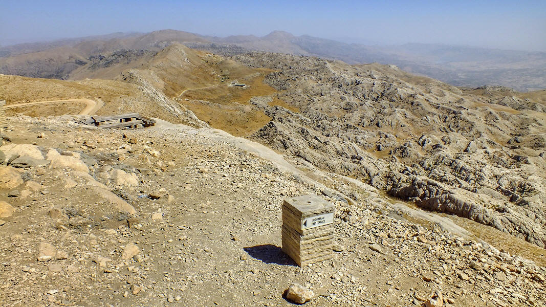 Blick von der West-Terrasse auf dem Gipfel des Nemrut Dağı ...