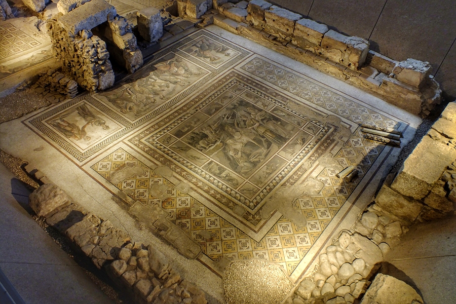 Hotel-Museum, Antakya: Fundament und Mosaikboden eines römischen Hauses (Detail, 2.-4. Jhdt.) ...
