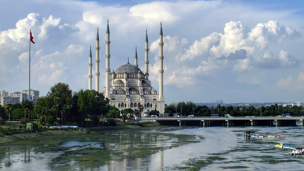 Von der Taşköprü hat man einen schönen Blick über den Seyhan-Fluss auf die Sabancı Merkez Moschee, die auf dem Gelände des Friedhofs der ehemaligen christlich-armenischen Gemeinde von Adana steht ... | |