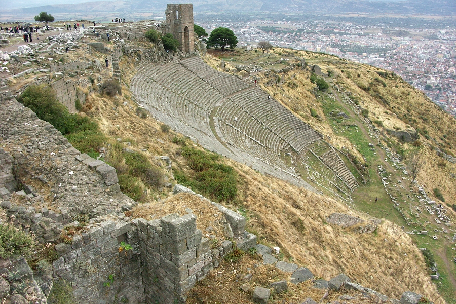 Das griechische Theater von Pergamon aus dem 5. Jahrhundert liegt am steilen Westhang des Burgberges und bot Platz für etwa 10.000 Zuschauer ... | |