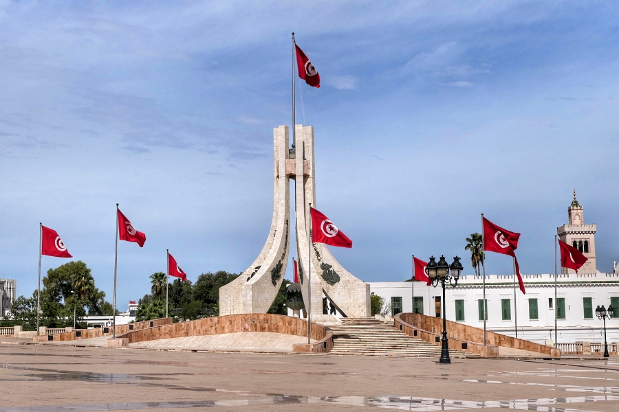 Das von dem Bildhauer Abdelfattah Boussetta (*1947) entworfene und 1989 eingeweihte Nationaldenkmal vor dem Rathaus von Tunis soll Aufbruch und Freiheit sowie die Verteidigung islamischer Werte symbolisieren ... | |