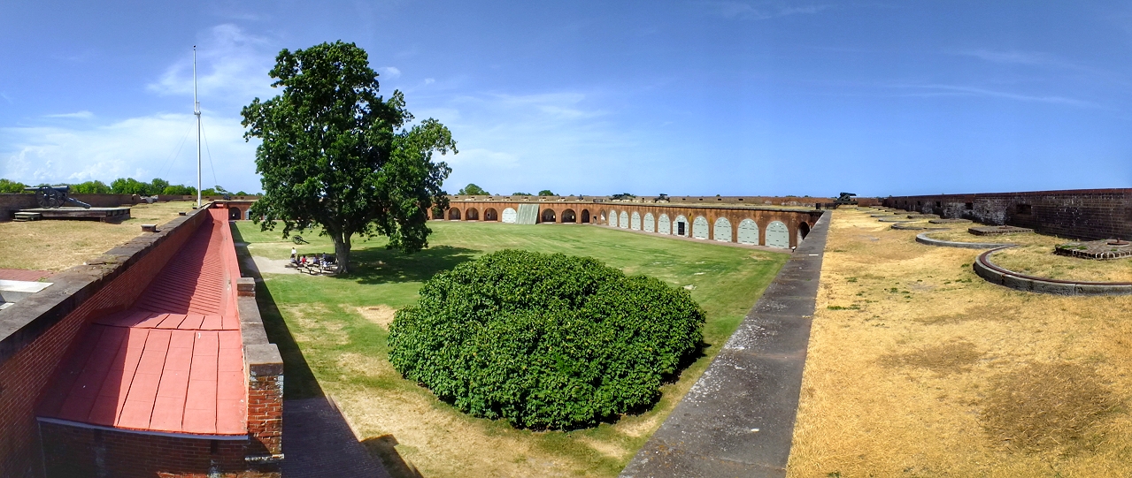 Der Blick von der Mauer zeigt, dass Fort Pulaski als Verteidigungsanlage mit 5-eckigem Grundriss gebaut wurde ...