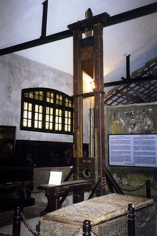 Im ehemaligen Gefängnis Hoa Lo wird auch der Raum gezeigt, in dem die Franzosen die Todesstrafe mit der Guillotine vollziehen ließen ...