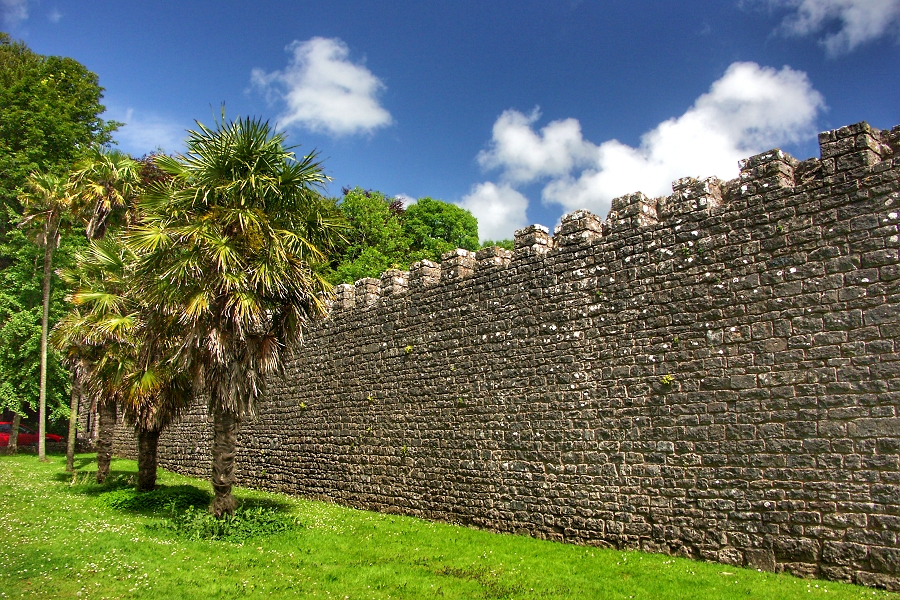 Ein Bild wie in den Tropen: Umfassungsmauer von Lamphey Palace (14. Jhdt.) ...
