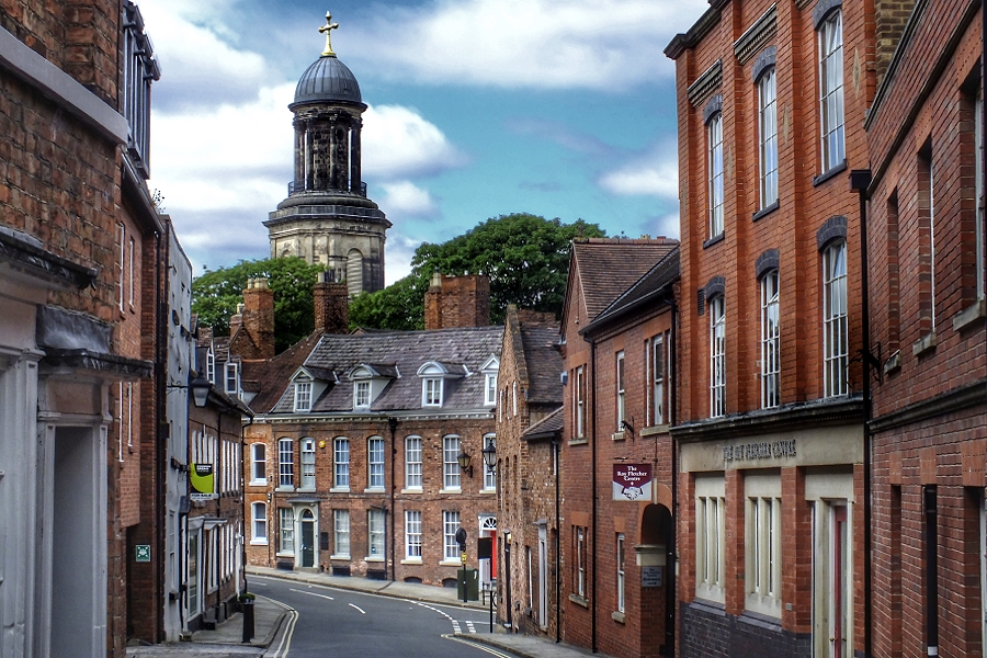 Shrewsbury: St. John's Hill mit Blick auf die Kirche St. Chad ...