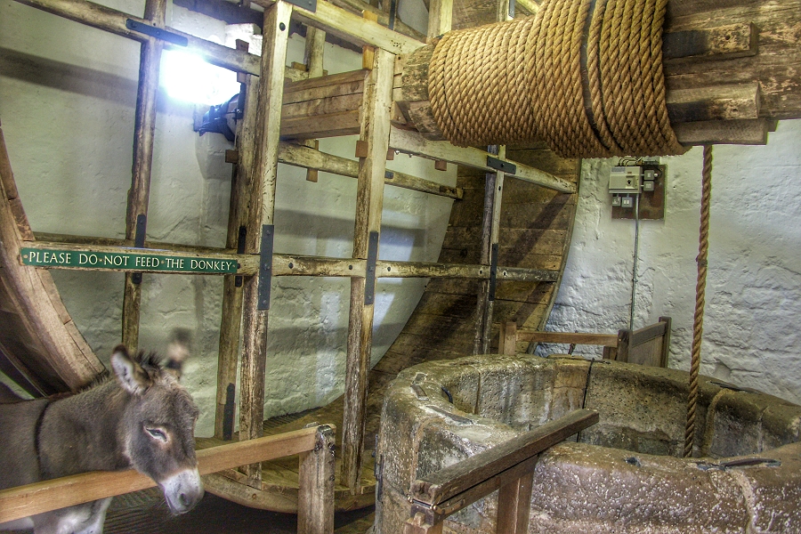 Ab dem 18. Jhdt. wurden Esel eingesetzt, um das große Förderrad (Laufrad) des Brunnens zu bewegen. Sie übernahmen damit die Arbeit, die zuvor von Gefangenen verrichtet wurde ... | |
