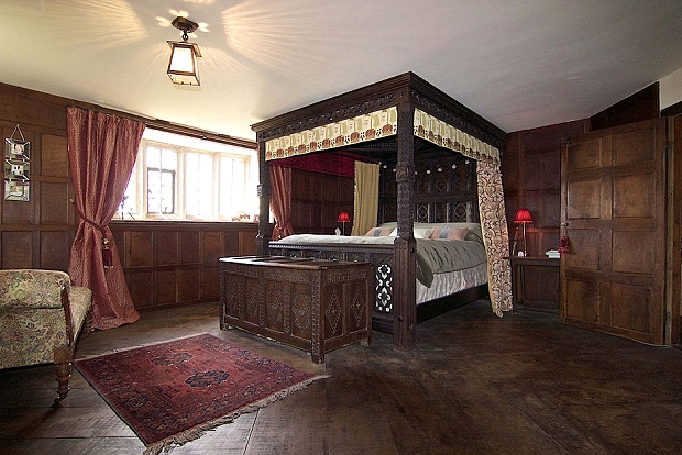 Arreton Manor: West Bedroom mit einem Bett aus der späten Tudorzeit ...