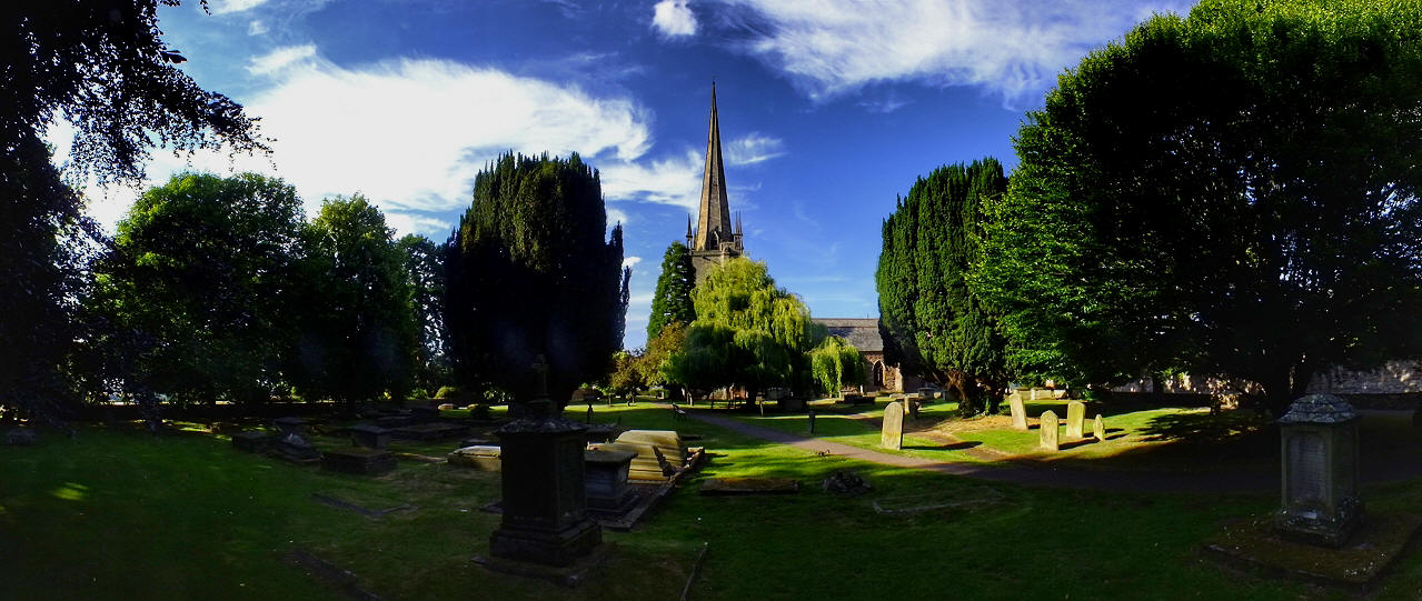 Die Pfarrkirche St Mary's in Ross-on-Wye (13. Jhdt.) liegt inmitten eines weitläufigen Kirchhofs ...